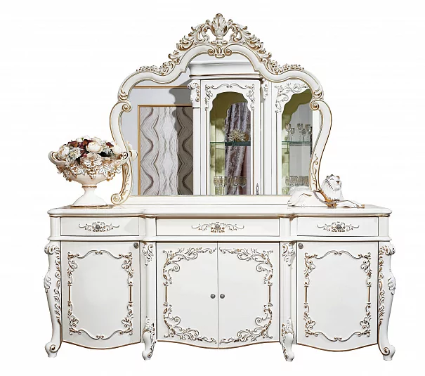Оформление комода в стиле барокко включает изысканные резные элементы, изогнутые линии и уникальные декоративные узоры. Он будет прекрасным акцентом в вашей гостиной, придавая помещению шарм и роскошь.