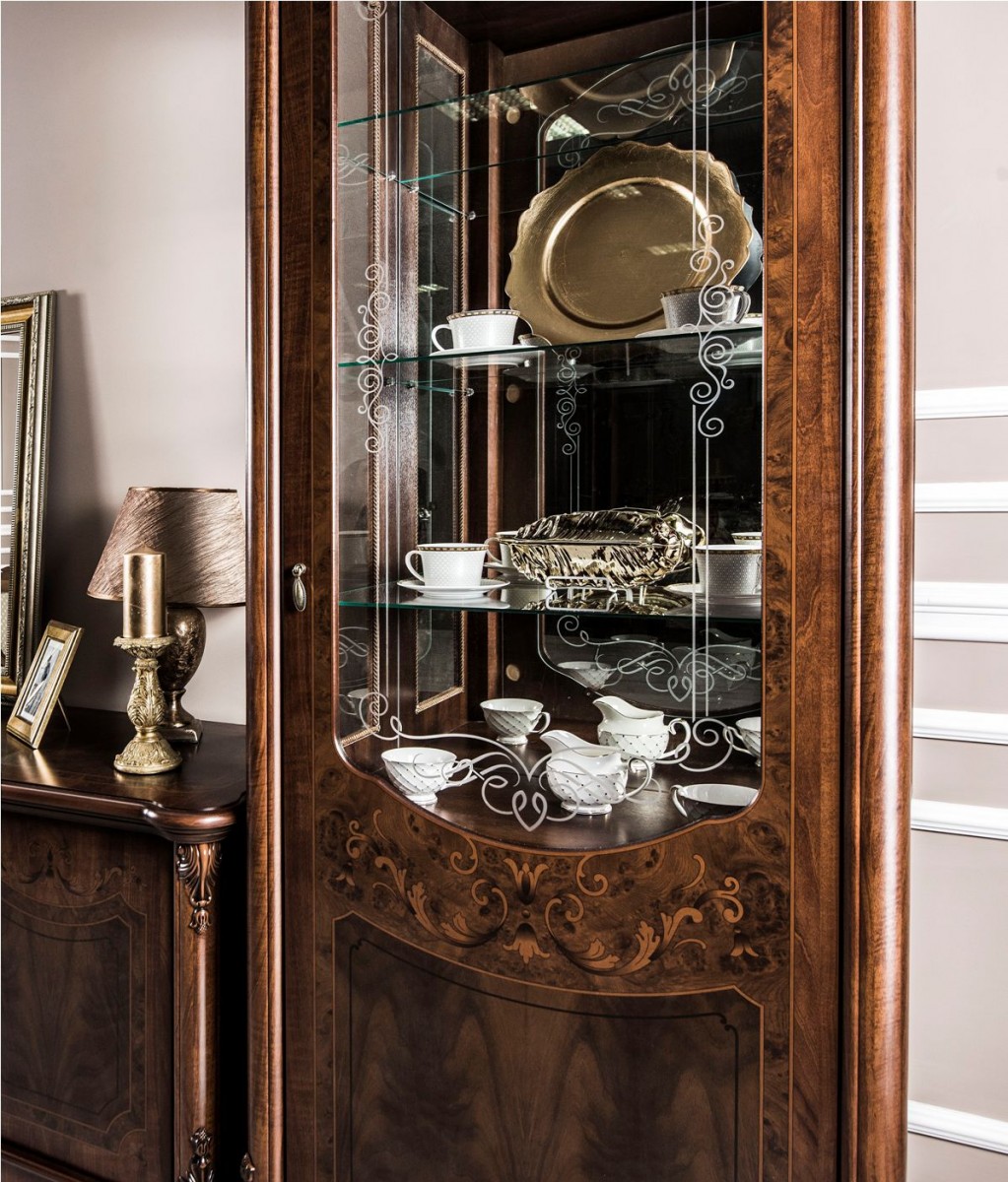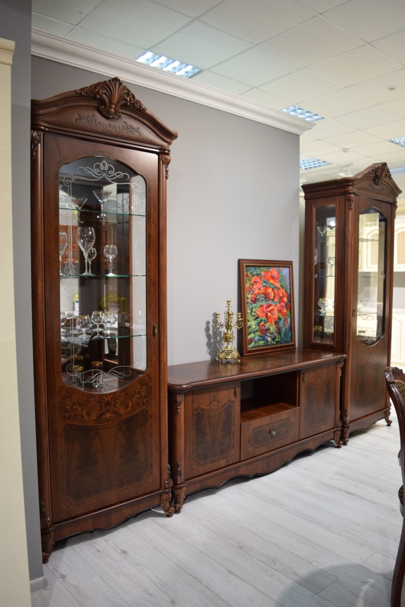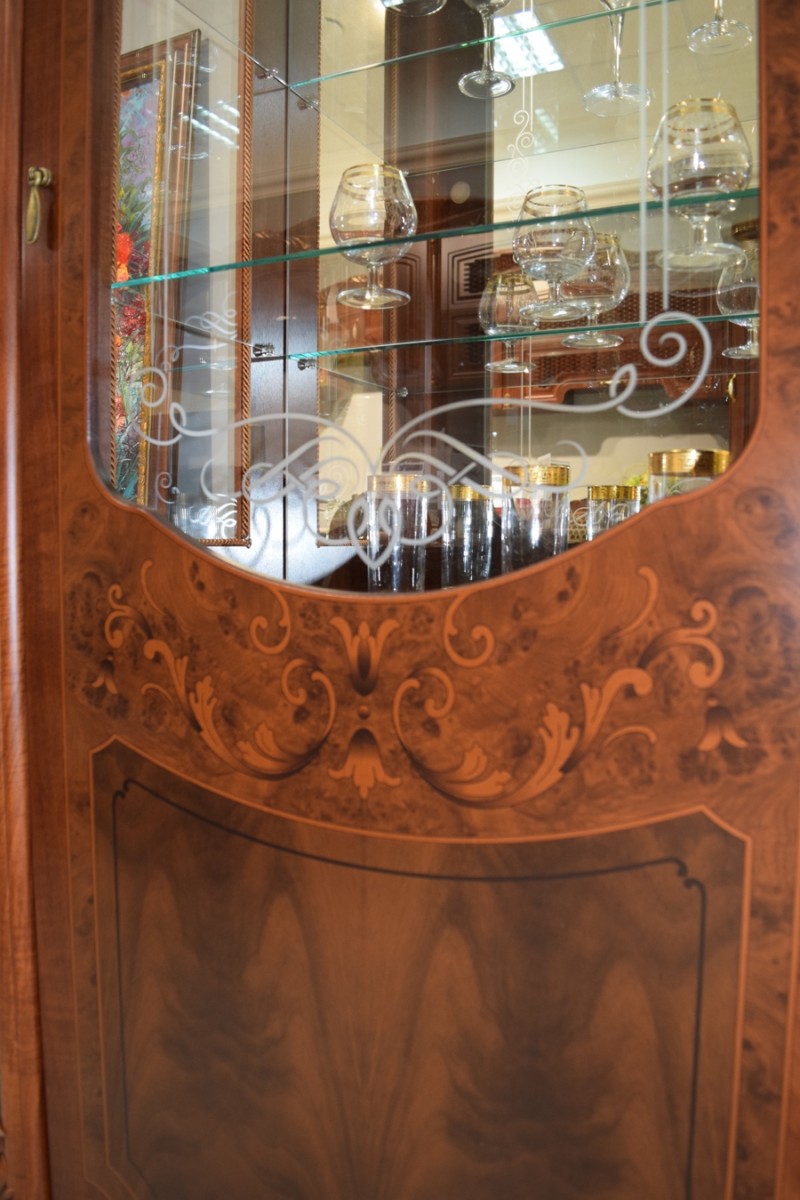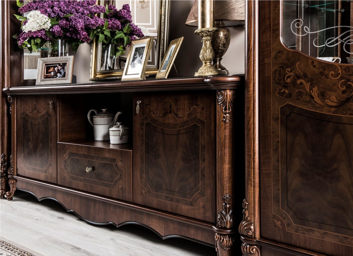 Декоративные элементы: Декоративные элементы, фасады, накладки покрыты золотой, темной патиной и матовым лаком.