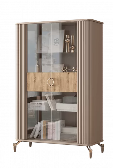 Витрина для гостиной 2-створчатая из гарнитура "Мадрид" предлагает пространство для хранения посуды, книг, декоративных элементов.