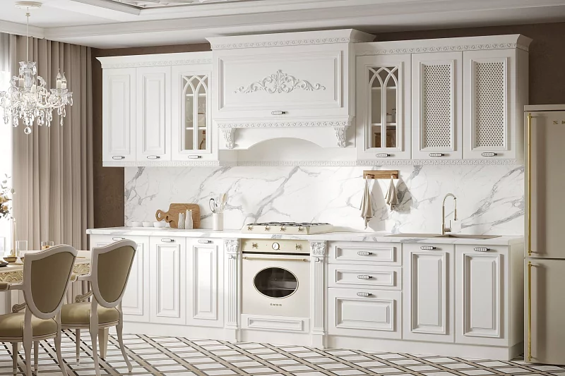Каждая кухня модели Монако уникальна  по-своему: бутылочницы, цветовая палитра, оформление колонн, разные вариации порталов, – всё это позволяет удовлетворить потребности каждого.