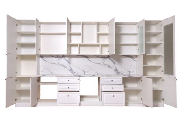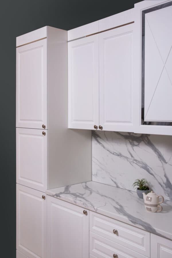 • Столешница: влагостойкая, 38 мм, матовая, цвет белый мрамор