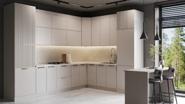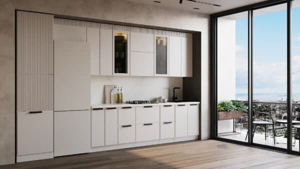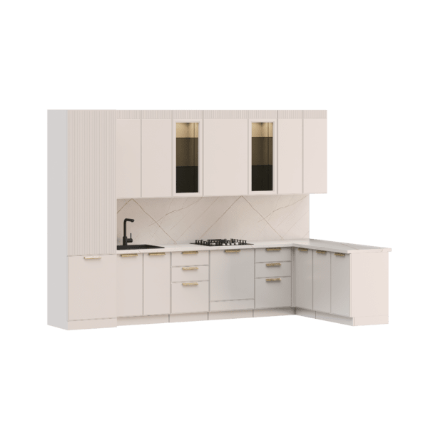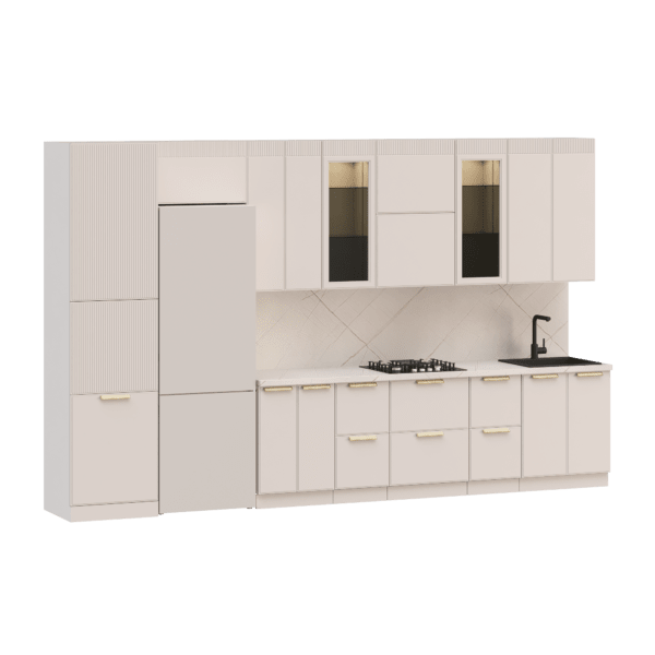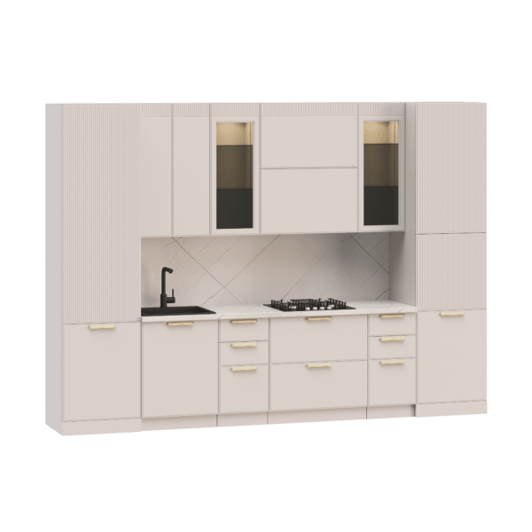 • Пристенок (фартук): в цветах столешницы с соединительными планками