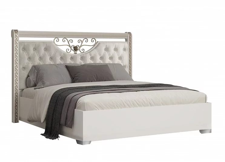 Кровать "Берта" выделяется строгими линиями в сочетании с утонченной резной отделкой и использованием кованного элемента в изголовье.