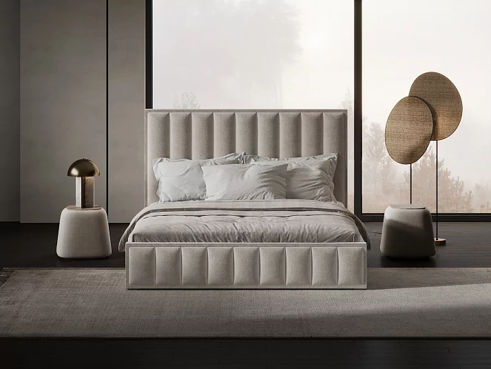 Интерьерная кровать "Эмили" - необычный и функциональный вариант спального места. Оригинальные мягкие изголовье и изножье с вертикальной прострочкой подчеркивают индивидуальность и неповторимость дизайнерской задумки.