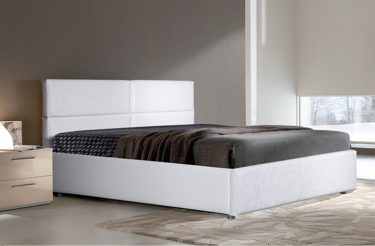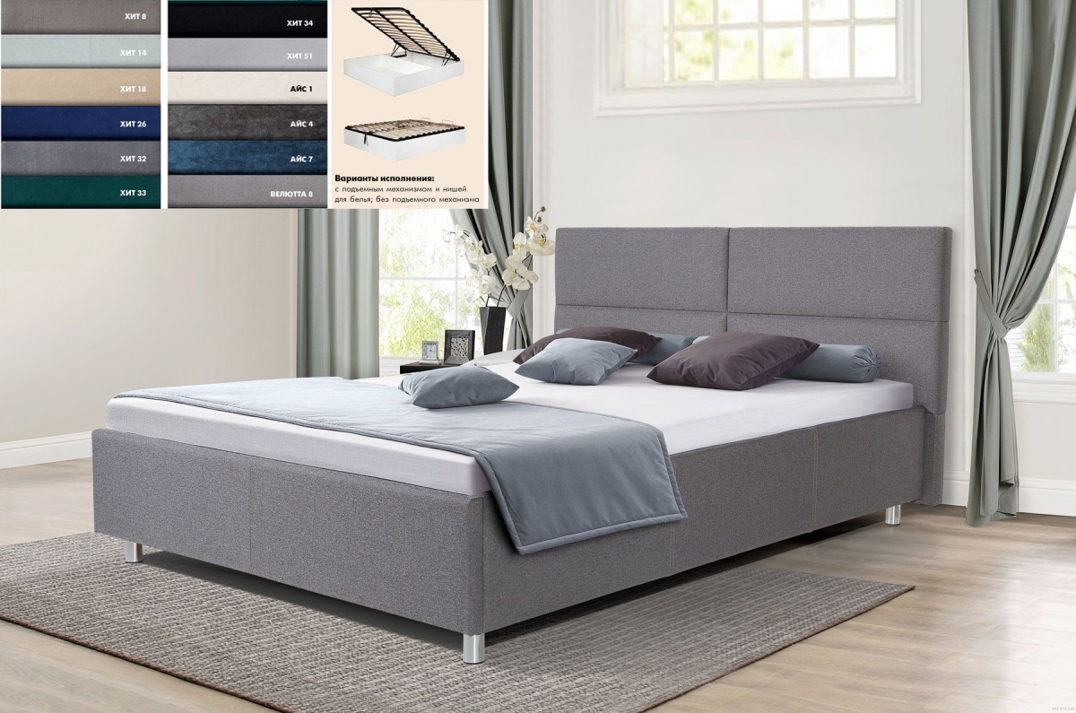Интерьерная кровать с мягкой тканевой обивкой Линда.