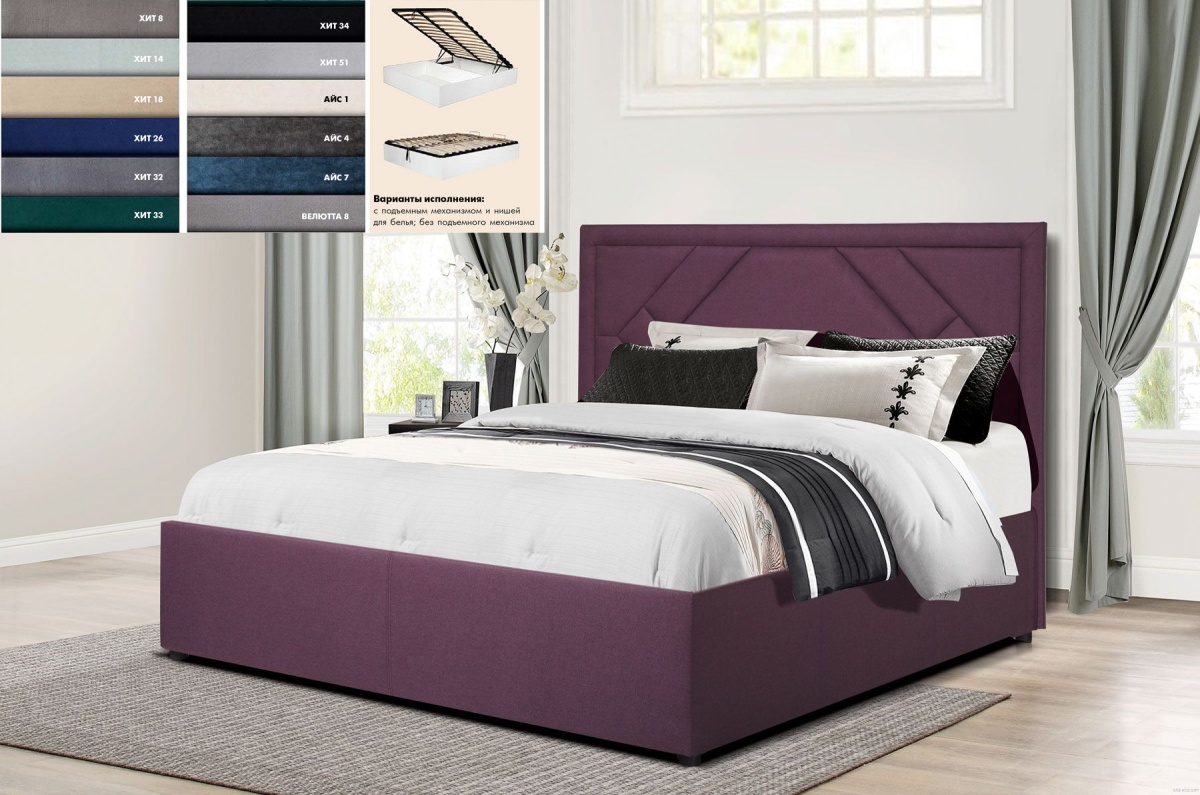 Интерьерная кровать с мягкой тканевой обивкой Стелла.