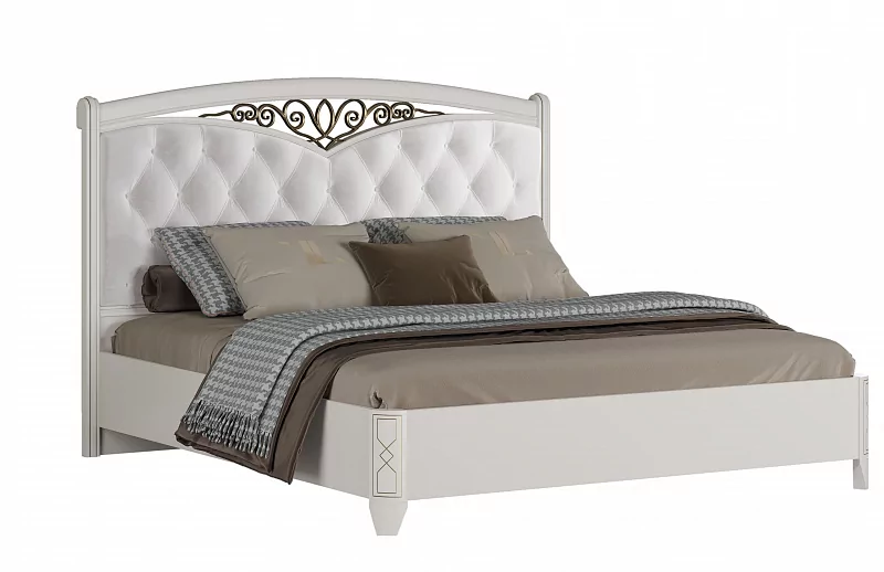 Кровать "Оливия" имеет мягкое изголовье с утончённым декором - ковка с фирменным дизайном, которая не просто украшает интерьер, но и привносит в него индивидуальность.
