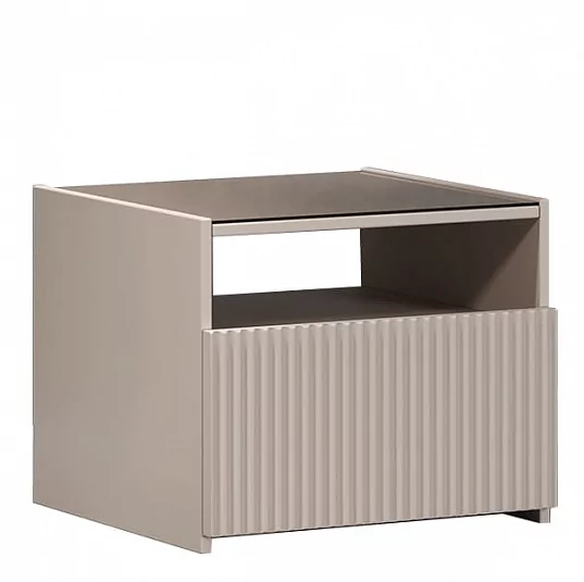 Тумба прикроватная "Афина" выполнена в современном и элегантном дизайне. Ящики оснащены доводчиками, что обеспечивает плавное и бесшумное закрывание. Фасады тумбы украшены фрезеровкой, добавляющей детализацию и изысканность, идеально подчеркивая общий стиль спальни.