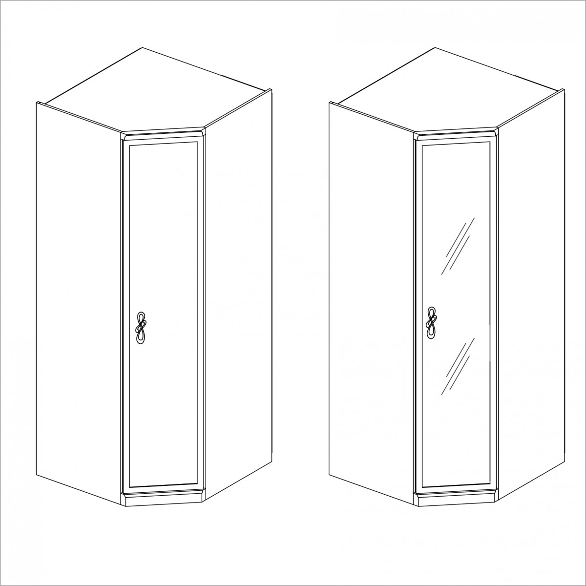 ! В композиции с угловым шкафом стоевая боковая устанавливается на угловой шкаф с одной стороны.