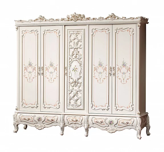 Шкаф 5 дверный "Шанель" - настоящий шедевр, который украсит ваш дом. Изогнутые фасады, мягкость линий. Образ дополняет флористические узоры.