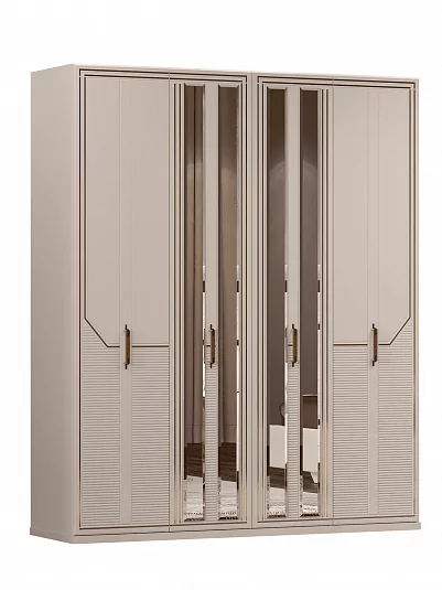 Шкаф 4 дверный "Стефани" выполнен в стиле ар-деко. Рисунок на фасадах сочетается со строгими линиями и золотыми вставками.