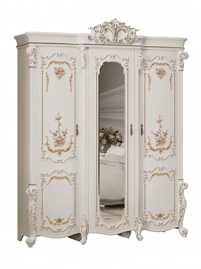 Шкаф 3 дверный "Венеция Классик" - настоящая классика! Резные узоры, цветочный орнамент, нежный кремовый цвет и оптимальное место для хранения вещей в Вашей спальне.