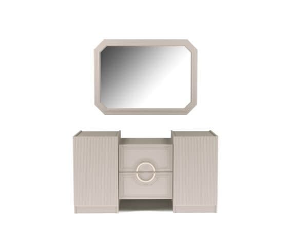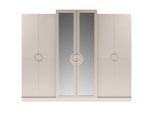 Размеры: Шкаф 4-х дверный – ш: 1843 мм, г: 603 мм, в: 2250 мм Шкаф 6-ти дверный – ш: 2693 мм, г: 603 мм, в: 2250 мм Кровать – ш: 2008 мм, г: 2038 мм, в: 1400 мм Тумба – ш: 500 мм, г: 416 мм, в: 516 мм Комод – ш: 1400 мм, г: 520 мм, в: 760 мм Зеркало – ш: 1100 мм, г: 16 мм, в: 800 мм