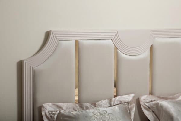 Изголовье кровати: мягкое основание микровелюр бежево-серебристого цвета