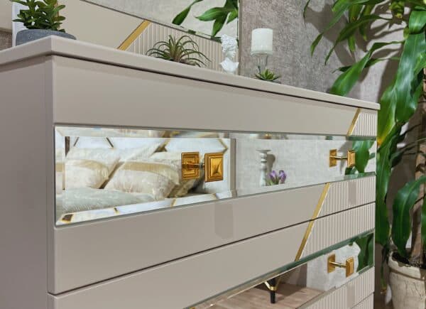 Размеры: Шкаф 4-х дверный ш: 2000 мм, г: 600 мм, в: 2100 мм Кровать ш: 1888 мм, г: 2050 мм, в: 1450 мм Тумба ш: 476 мм, г: 400 мм, в: 431 мм Комод ш: 960 мм, г: 450 мм, в: 920 мм Зеркало ш: 900 мм, г: 20 мм, в: 1022 мм