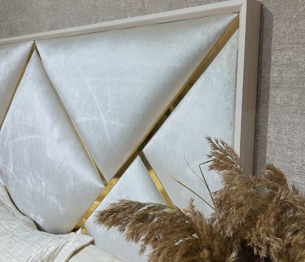 Изголовье кровати: мягкое основание микровелюр темно-серого или бежево-серебристого цвета