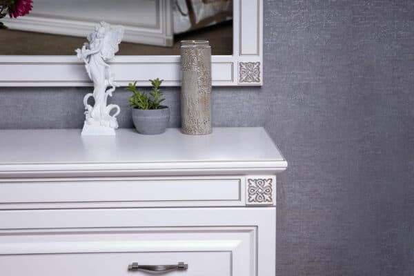 • Фасад: прямой, крашеный ЛМДФ с фрезеровкой, карниз из пенополиуретана, лак матовый