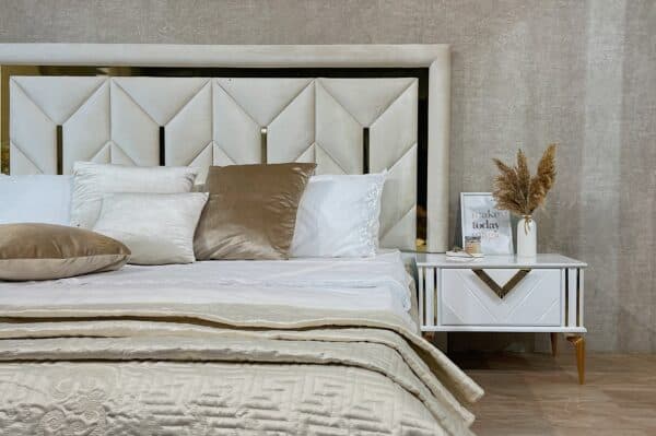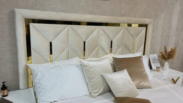 Изголовье кровати: мягкое основание микровелюр бежевого цвета