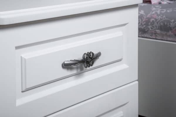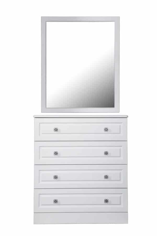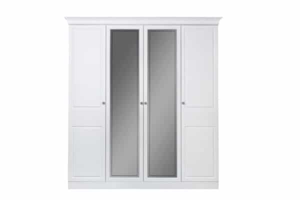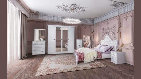 • Размеры: Шкаф 4-х дверная – Ш:2103мм, В:2295мм, Г:655мм Кровать – Ш: 2140мм, В:1507мм, Г:2090мм Тумба – Ш:508мм, В:542мм, Г:464мм Комод – Ш:890мм, В:1000мм, Г:464мм Зеркало – Ш:840мм, В:1025мм, Г:16мм Комод узкий Ш:508мм, В:1169мм, Г:464мм