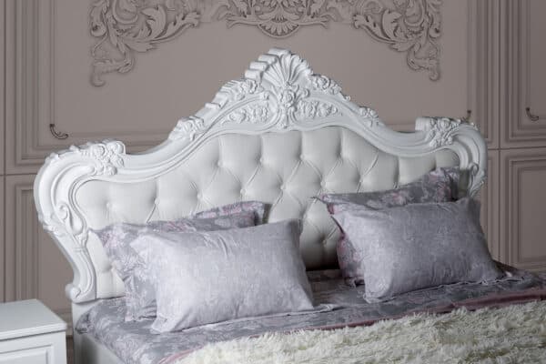 • Изголовье кровати: мягкое основание экокожа белого цвета