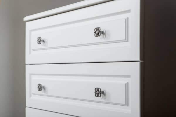 • Фасад: прямой, крашеный ЛМДФ с фрезеровкой, карниз из пенополиуретана, лак матовый