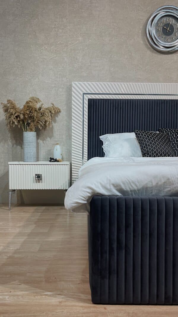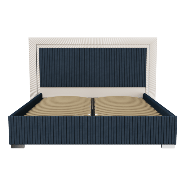 Изголовье кровати: мягкое основание микровелюр темно-синего цвета