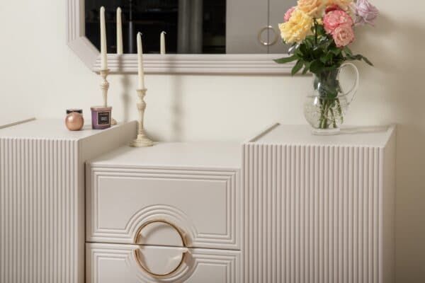 Фасад: прямой, крашеный ЛМДФ (эмаль) с фрезеровкой, лак матовый