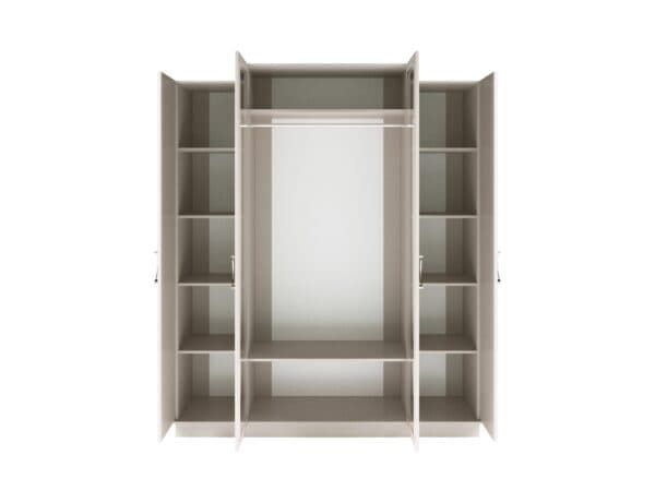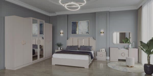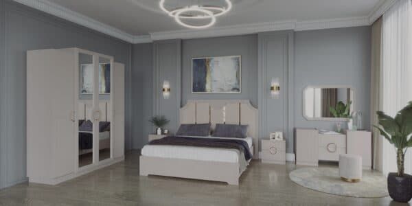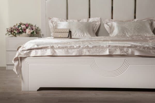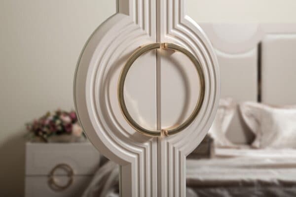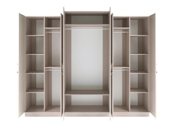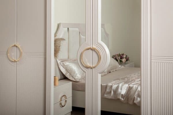 Размеры: Шкаф 4-х дверный – ш: 1843 мм, г: 603 мм, в: 2250 мм Шкаф 6-ти дверный – ш: 2693 мм, г: 603 мм, в: 2250 мм Кровать – ш: 2008 мм, г: 2038 мм, в: 1400 мм Тумба – ш: 500 мм, г: 416 мм, в: 516 мм Комод – ш: 1400 мм, г: 520 мм, в: 760 мм Зеркало – ш: 1100 мм, г: 16 мм, в: 800 мм