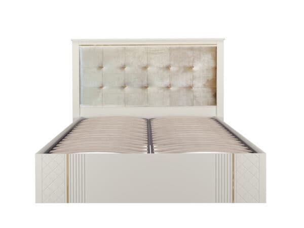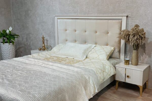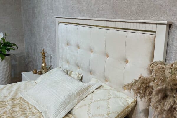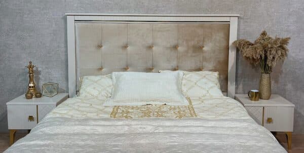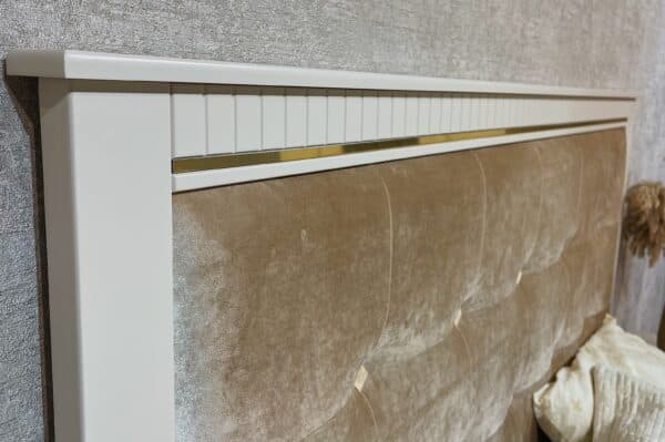 Изголовье кровати: мягкое основание микровелюр бежево-серебристого цвета