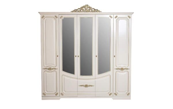 • Размеры: Шкаф 5-ти дверный – Ш:2320мм, В:2367мм, Г:650мм Шкаф 3-х дверный – Ш:1440мм, В:2367мм, Г:650мм Кровать 1.8 – Ш: 2140мм, В:1510мм, Г:2100мм Кровать 1.6 – Ш:1940мм, В:1482мм, Г:2100мм Тумба – Ш:490мм, В:495мм, Г:390мм Комод – Ш:940мм, В:890мм, Г:420мм Зеркало – Ш:830мм, В:970мм, Г:95мм