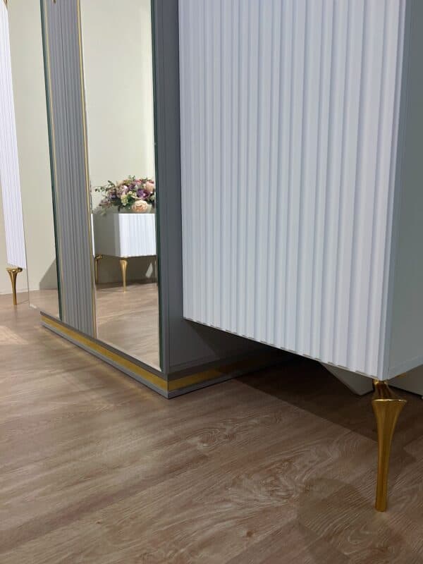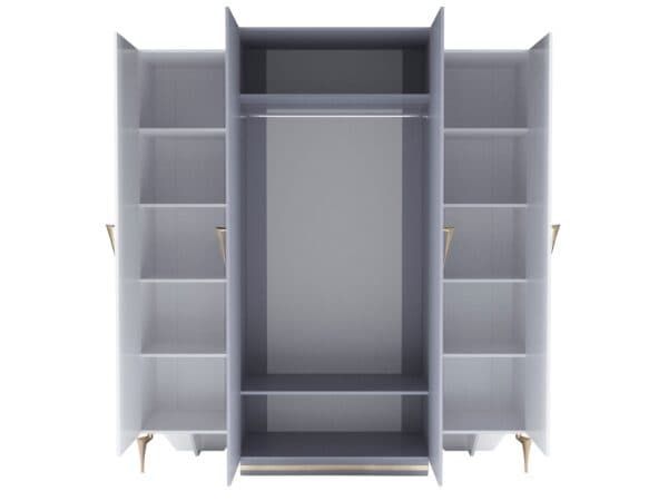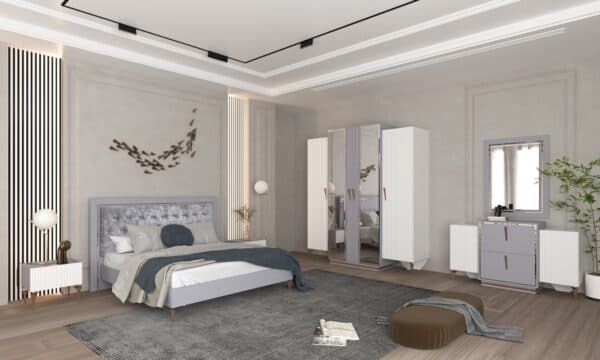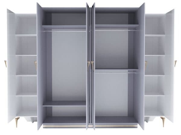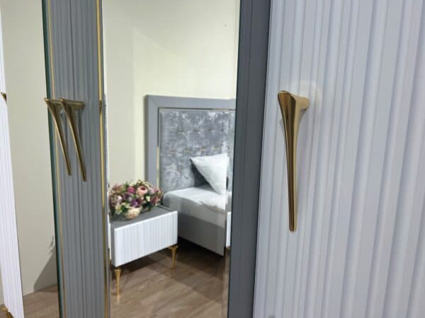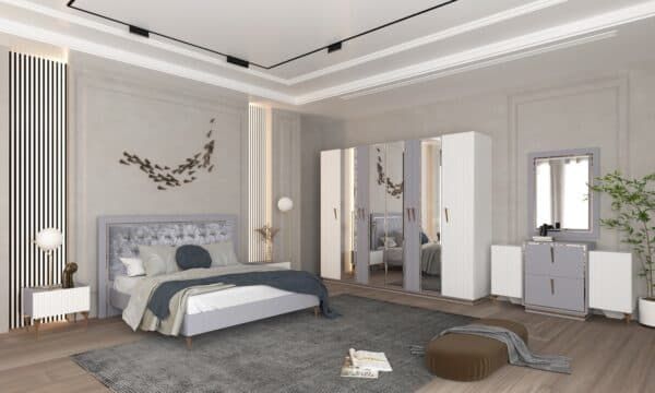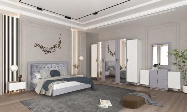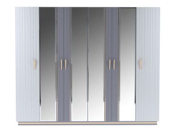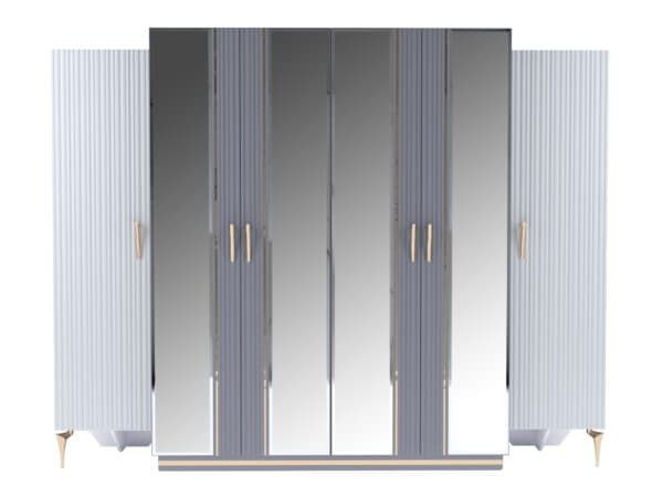 Размеры: Шкаф 4-х дверный ш: 1998 мм, г: 600 мм, в: 2220 мм Шкаф 6-ти дверный с опорой ш: 2800 мм, г: 600 мм, в: 2220 мм Шкаф 6-ти дверный без опор ш: 2698 мм, г: 600 мм, в: 2220 мм Кровать ш: 2100 мм, г: 2037 мм, в: 1300 мм Тумба ш: 500 мм, г: 420 мм, в: 460 мм Комод ш: 1500 мм, г: 500 мм, в: 880 мм Зеркало ш: 808 мм, г: 20 мм, в: 1108 мм