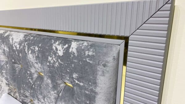Изголовье кровати: мягкое основание микровелюр светло-серого цвета