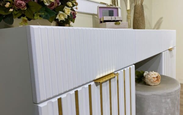 Фасад: прямой, крашеный ЛМДФ (эмаль) с фрезеровкой, лак матовый
