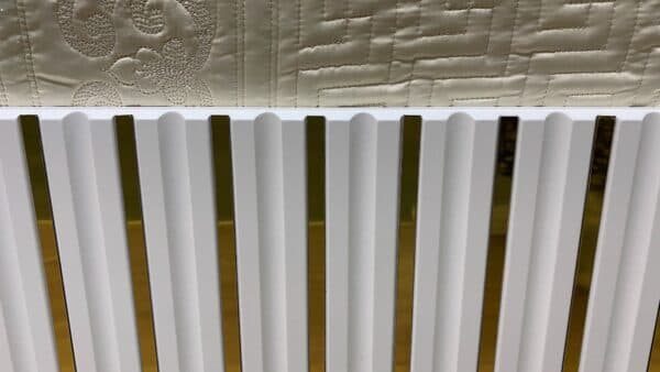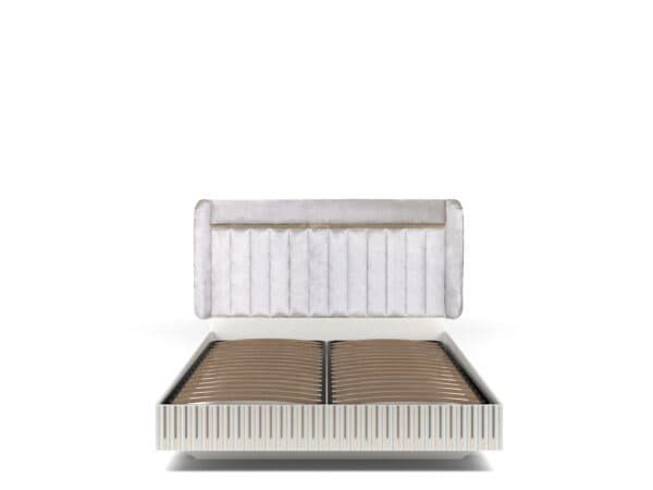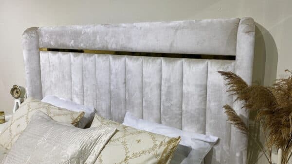 Изголовье кровати: мягкое основание микровелюр темно-серого или бежево-серебристого цвета