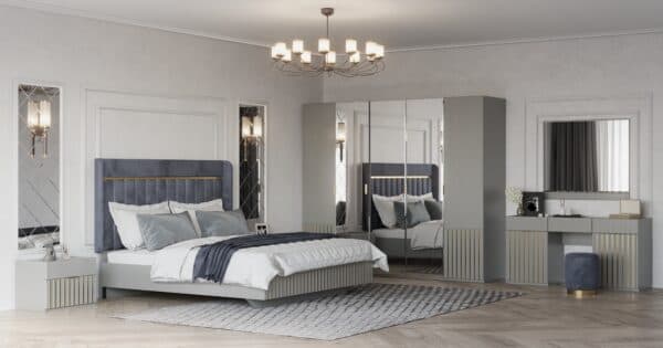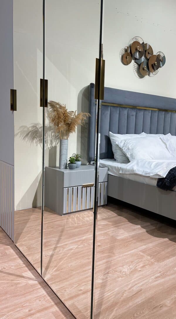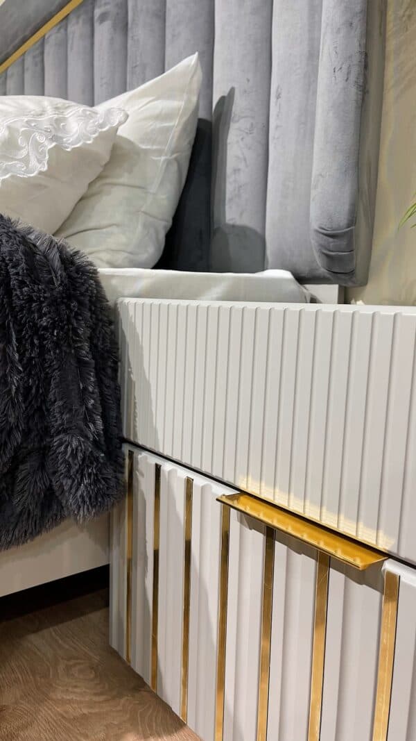 • Изголовье кровати: мягкое основание микровелюр темно-серого или бежево-серебристого цвета