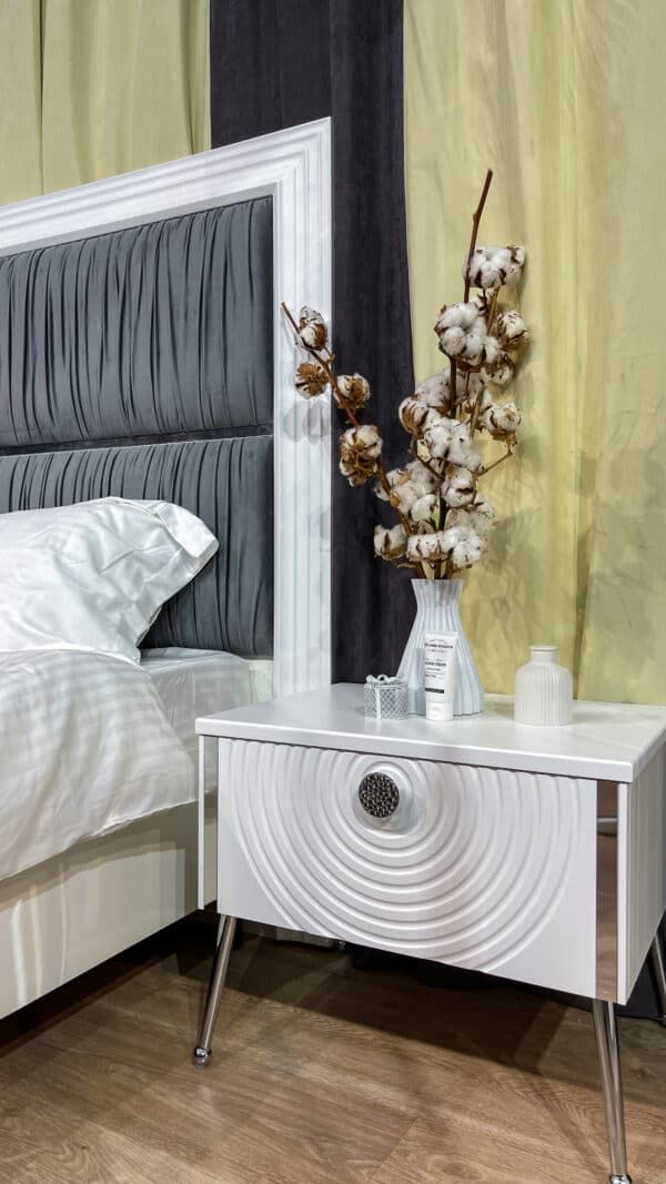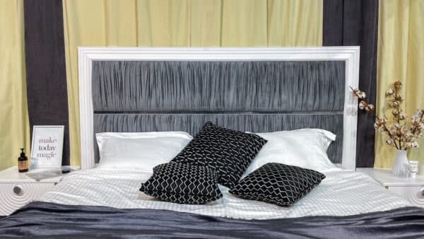 Изголовье кровати: мягкое основание микровелюр темно-серого цвета