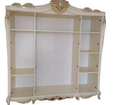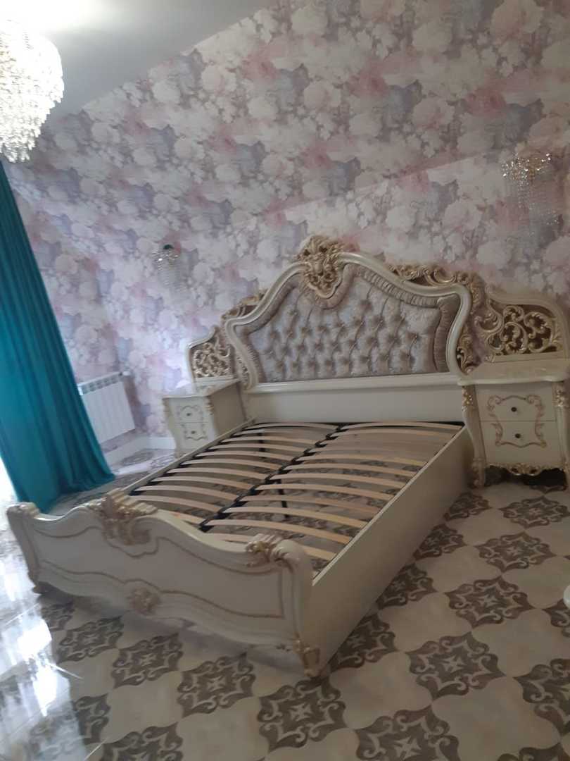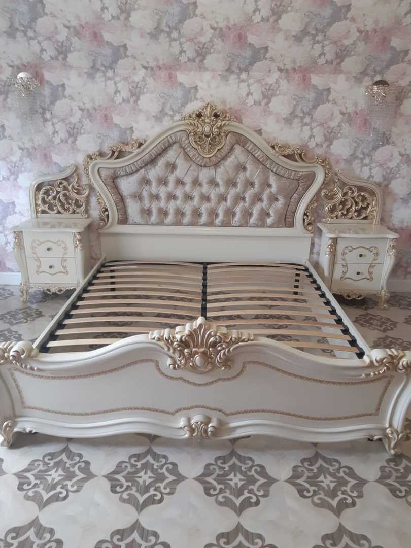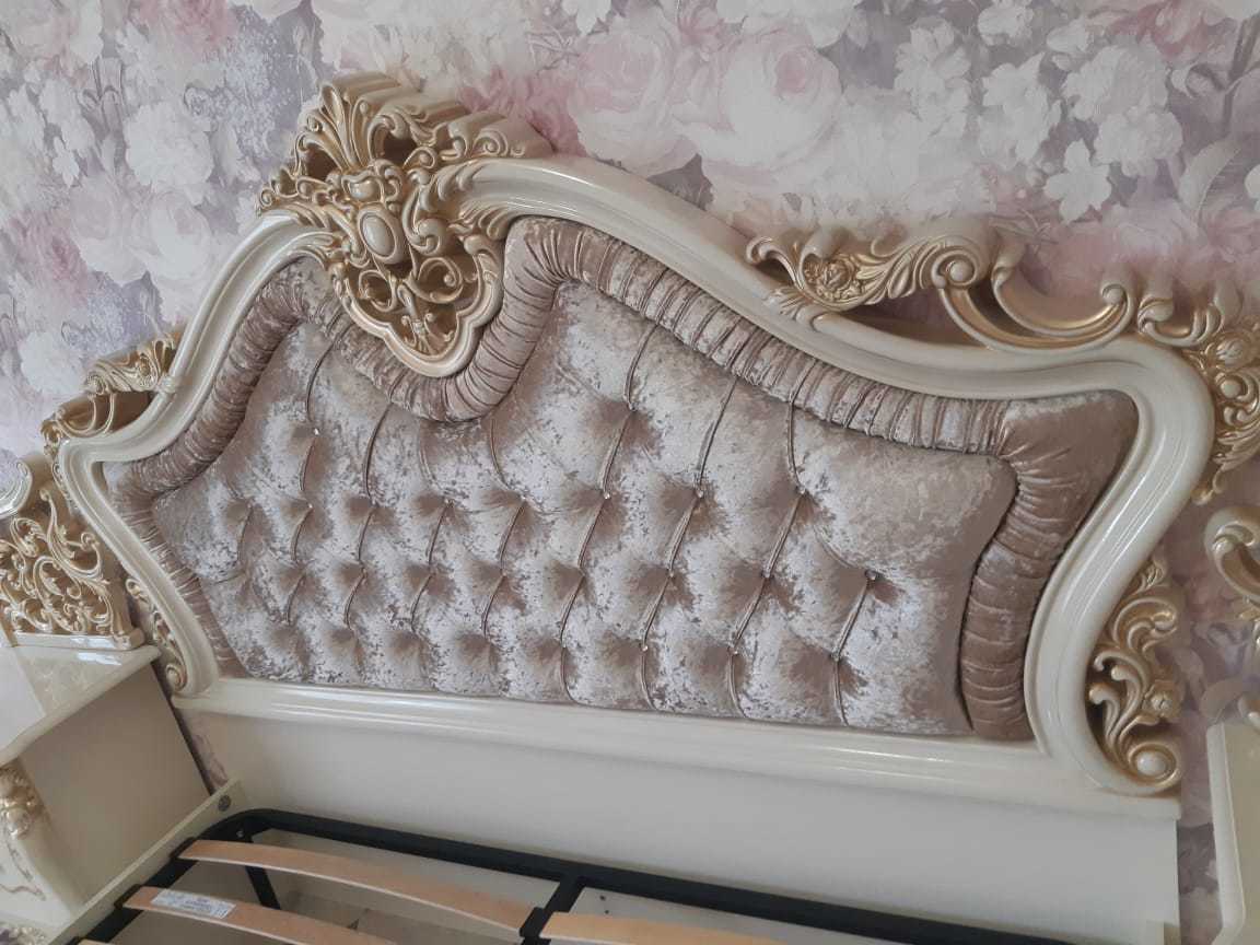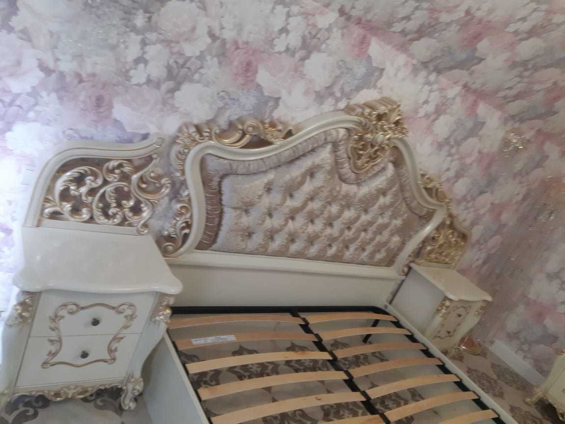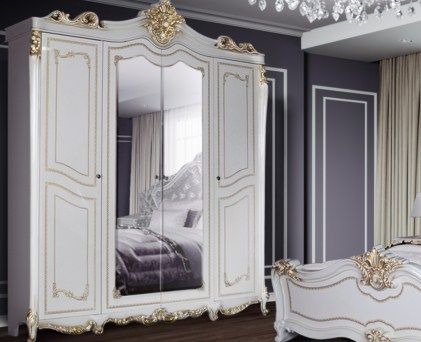 В комплект входят: 4-х дверный шкаф, кровать двуспальная 180×200 см., комод, тумба прикроватная 2 шт.