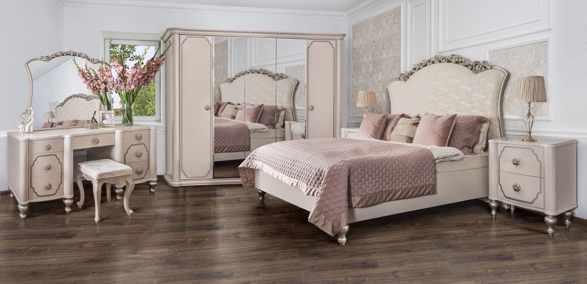 Отделка: Патина шампань, эмаль бежевый, лак шелковистый матовый;