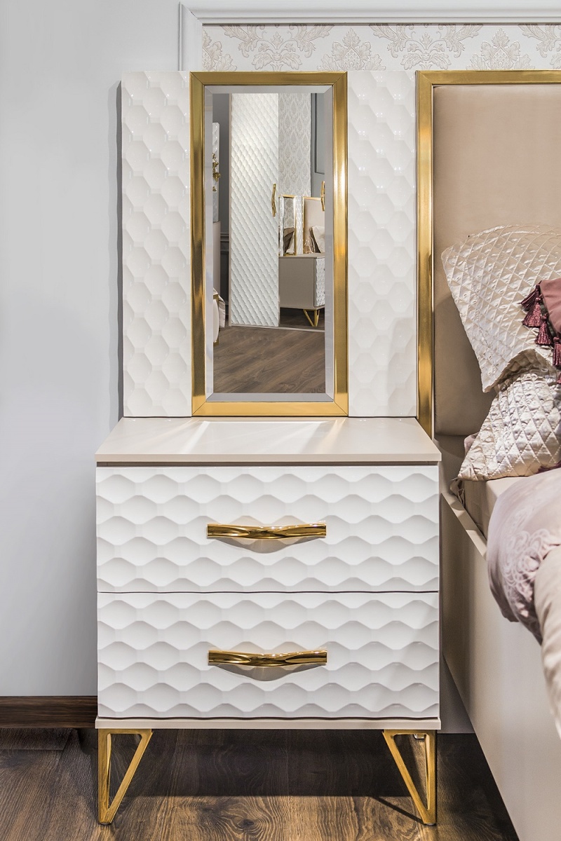 Изголовье: ЛДСП, монолитное. Рамка - пластик покрытие латунь;