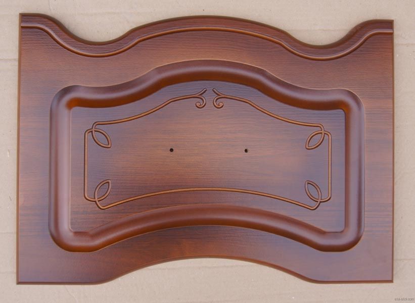 Все фасадные части изготовлены из ламинированного МДФ. На фасадные части наносится патина. Покрывается лаком. Каркасные части изготовлены из ламинированного ДСП. Кровать комплектуется настилом. Изготавливается в цвете «орех» или «береза».