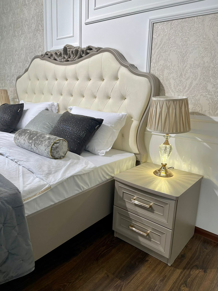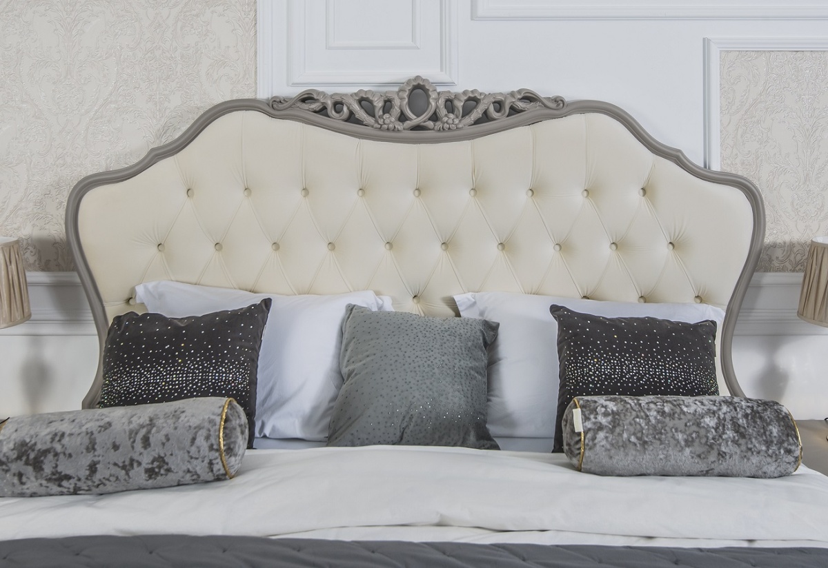 Изголовье: Велюр крем, с каретной стяжкой и пуговицами.