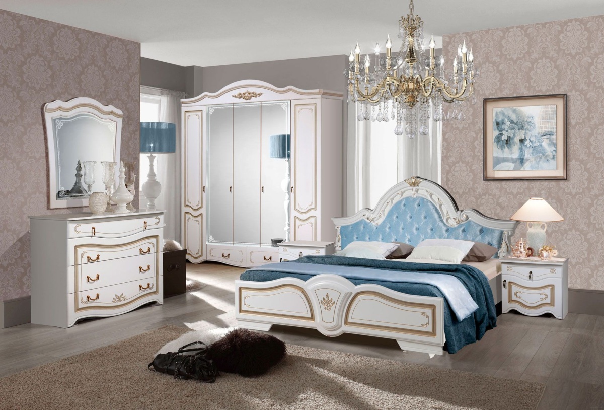 Спальня Рим с мягким изголовьем голубого цвета продается комплектом.