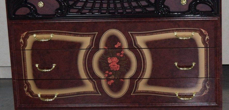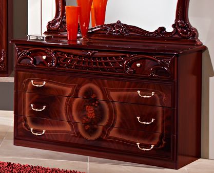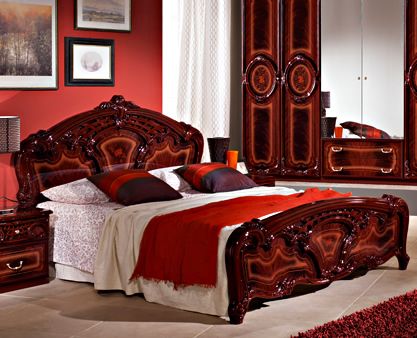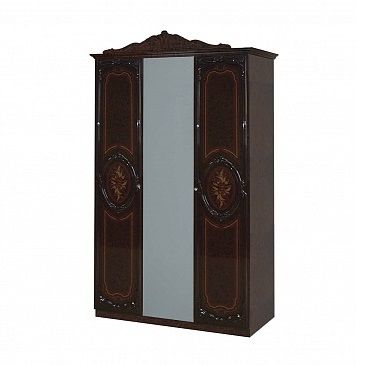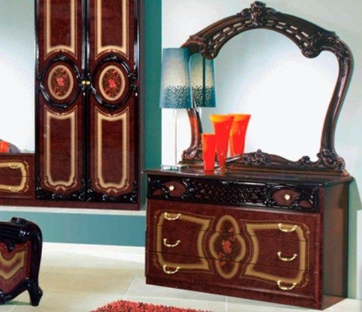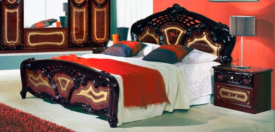 В комплект входят: кровать двуспальная 160×200 см., шкаф 3-дверный, тумба прикроватная 2 шт., комод с зеркалом.
