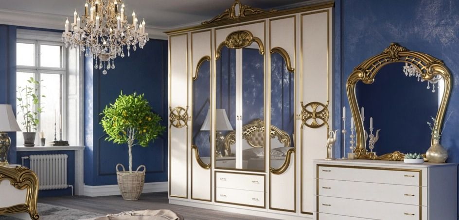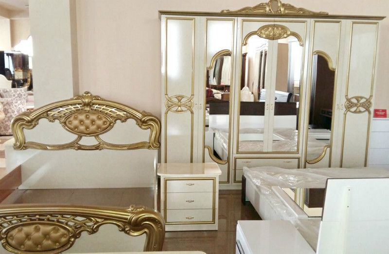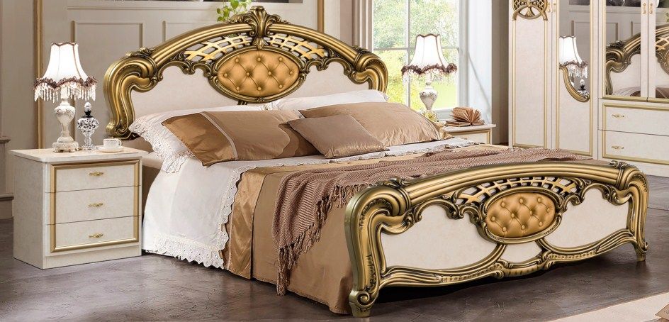 Спальня с 6-дверным шкафом Ольга (беж/золото)