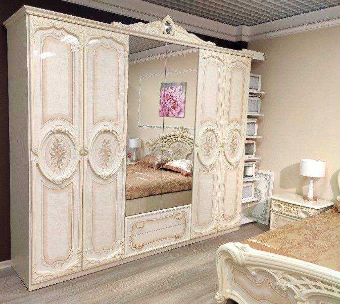 Спальня с 6-дверным шкафом Роза (беж глянец)