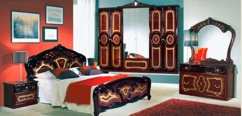 Спальня с 6-дверным шкафом Роза (могано глянец)