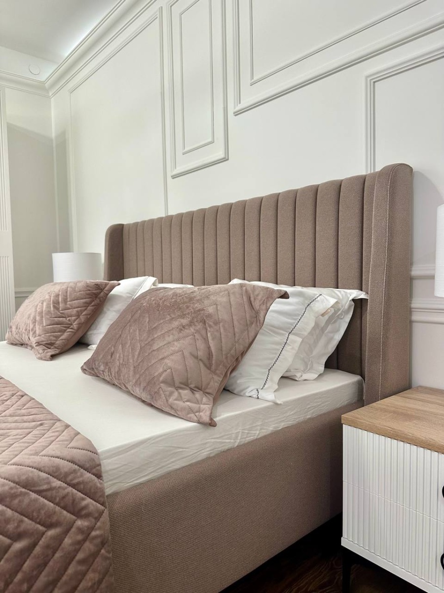 Изголовье:ЛДСП в ткани премиум рогожка, поперечная стяжка, форма изголовья с бортиками