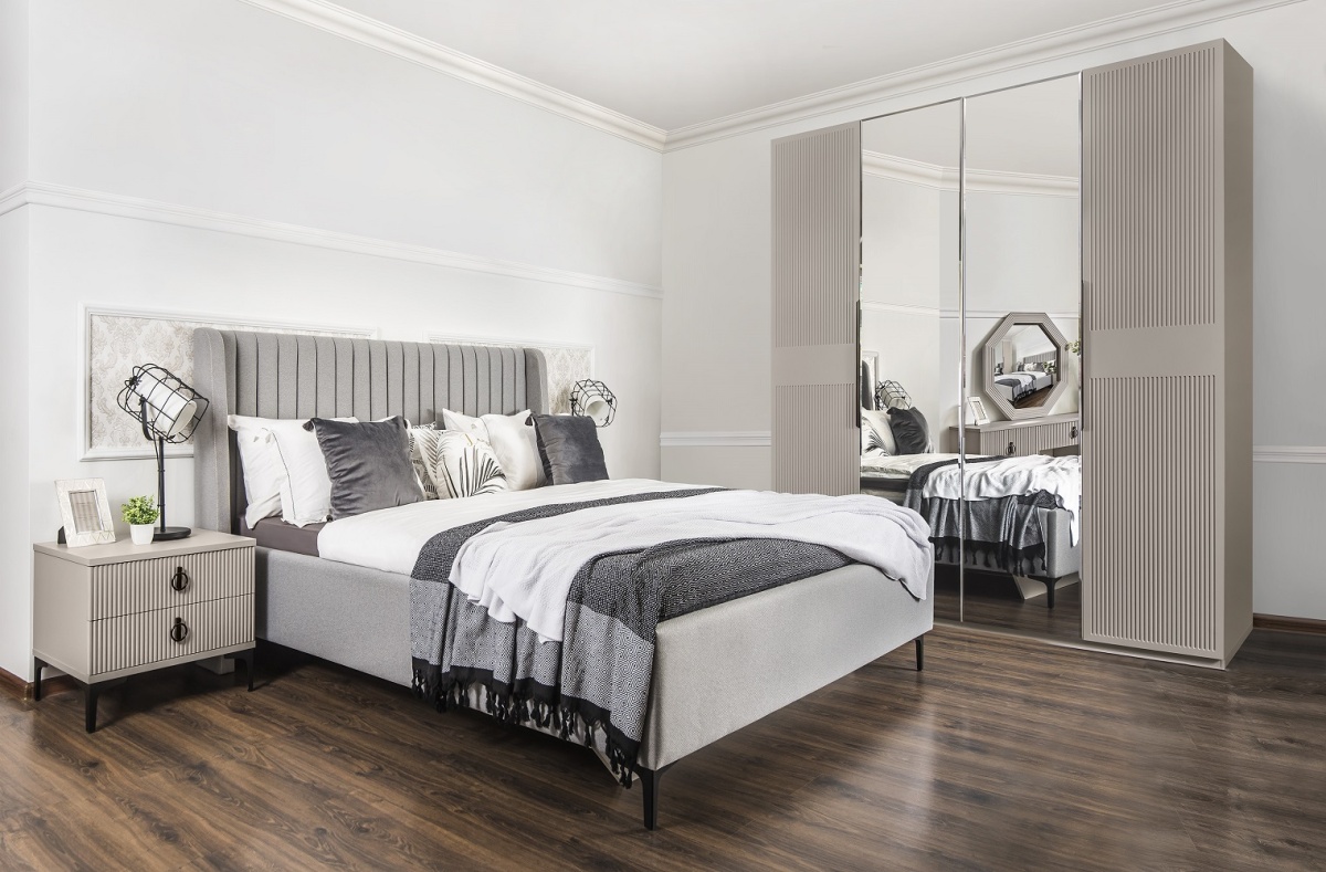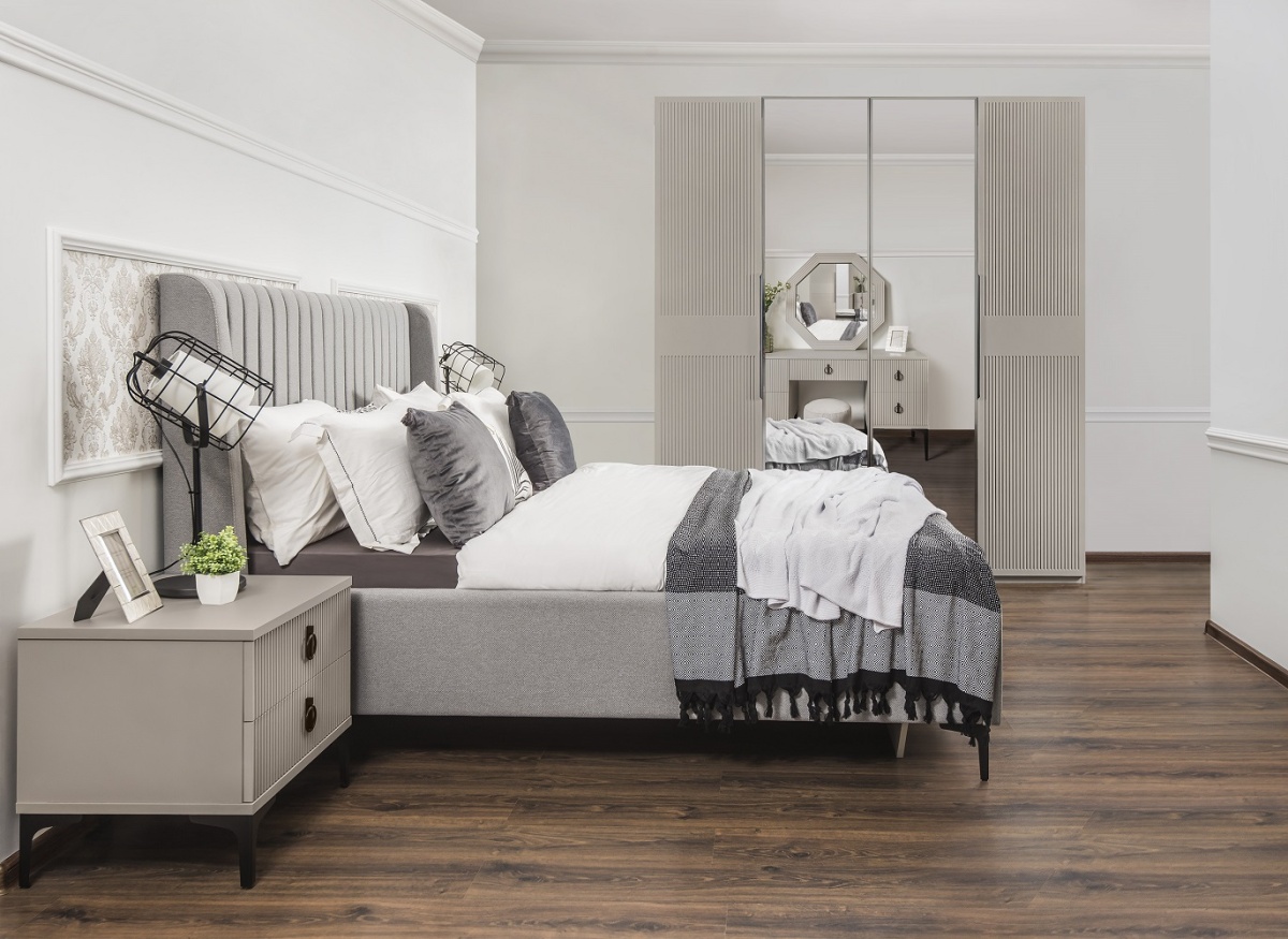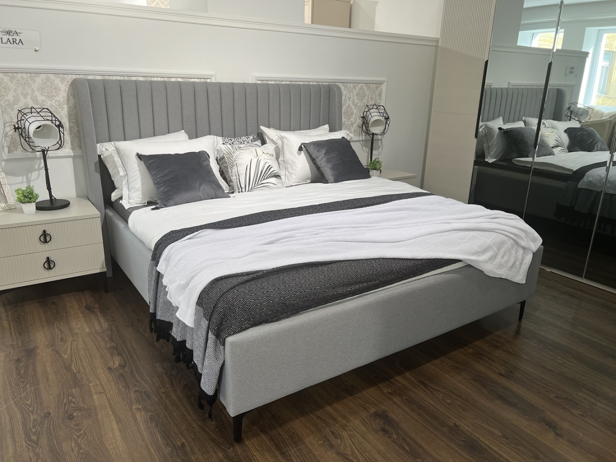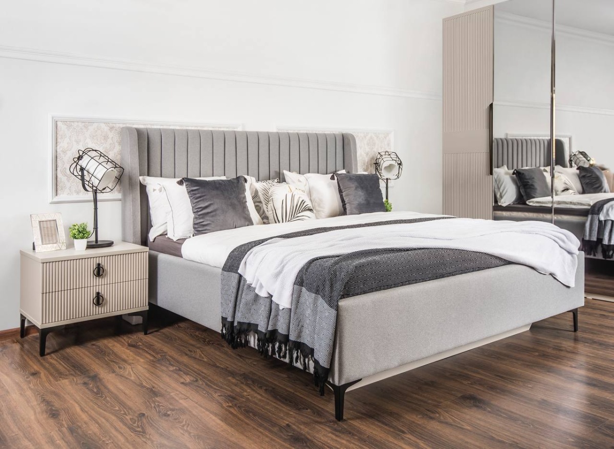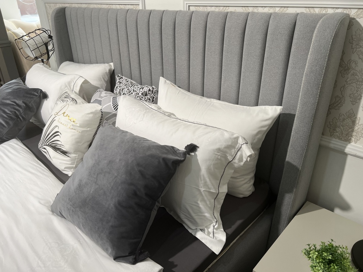 Изголовье:ЛДСП в ткани премиум рогожка, поперечная стяжка, форма изголовья с бортиками