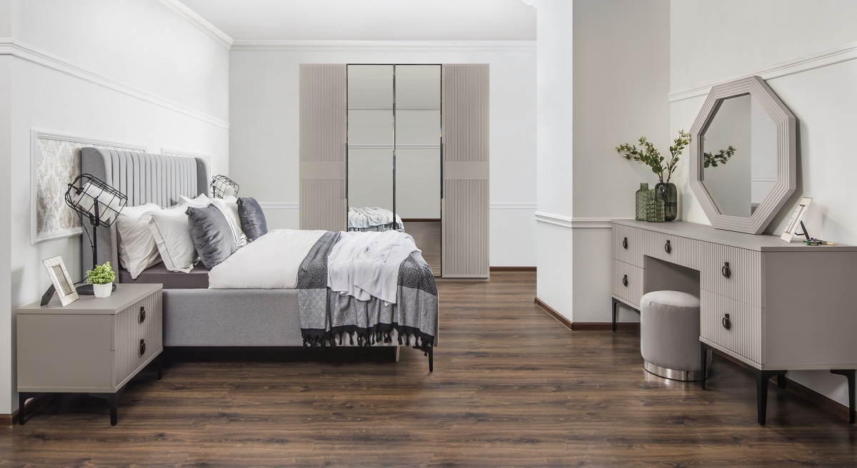 Зеркало: 4 зеркала с фацетом, приклеивается по технологии полного закрашивания полотна клеем, дымчатая тонировка графит